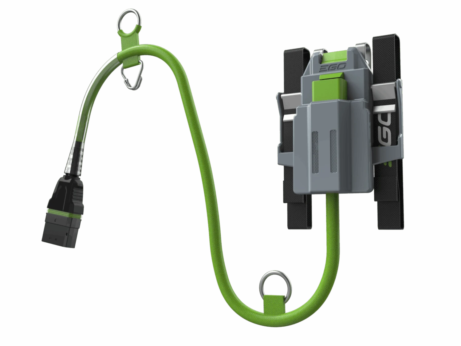 Das Kabel der Gurthalterung ist in den Sicherheits-Strop integriert, um es sicher am Gürtel und dem Gurtsystem zu befestigen. Der neue 4,0 Ah-Akku wurde mit einem optimalen Verhältnis von Leistung und Gewicht für den Einsatz von professionellen Baumpflegern entwickelt.