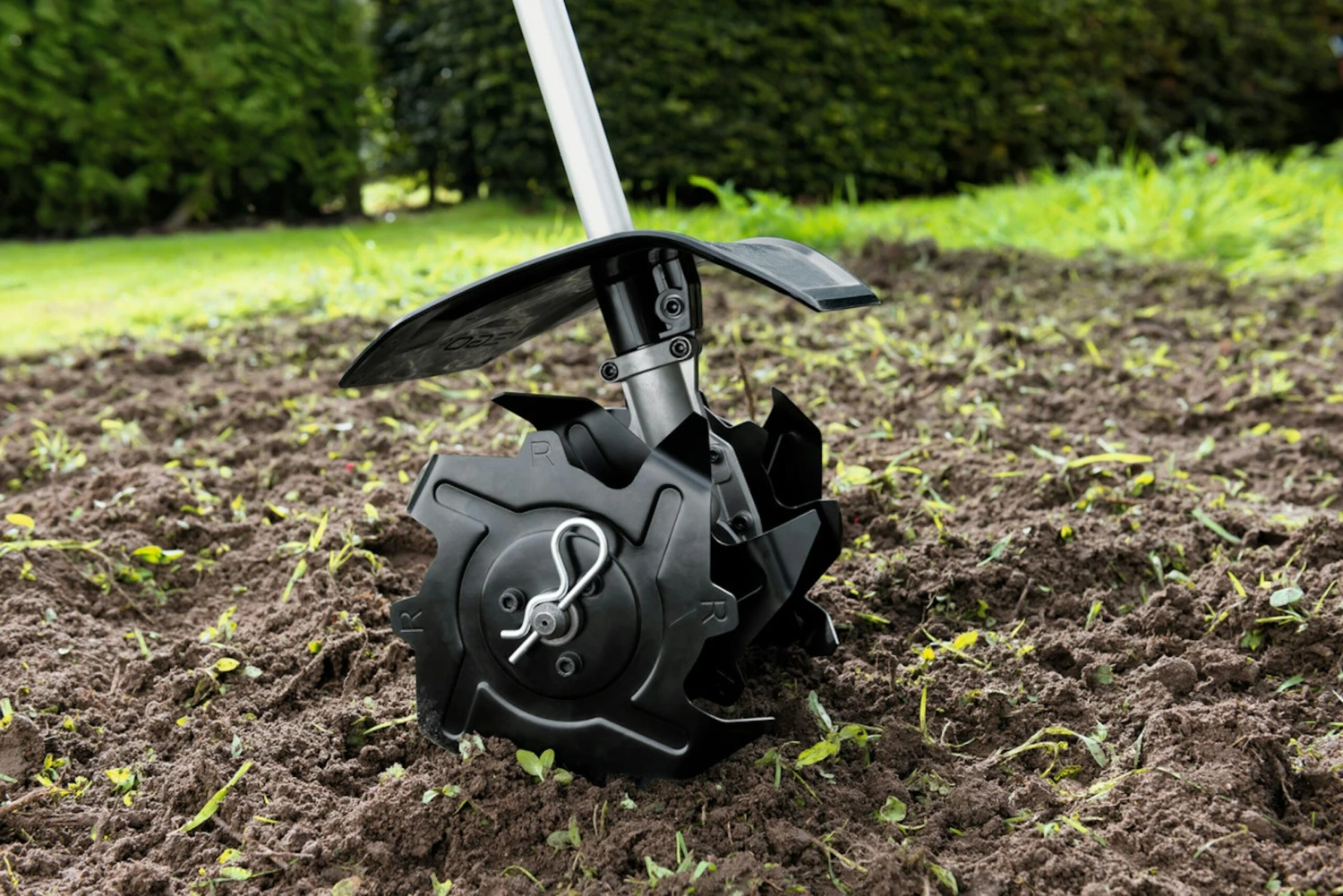 Die einfachere Art einen Boden für die Bepflanzung vorzubereiten. Die rotierenden Messer der Fräse entfernen das Unkraut und lüften den Boden.