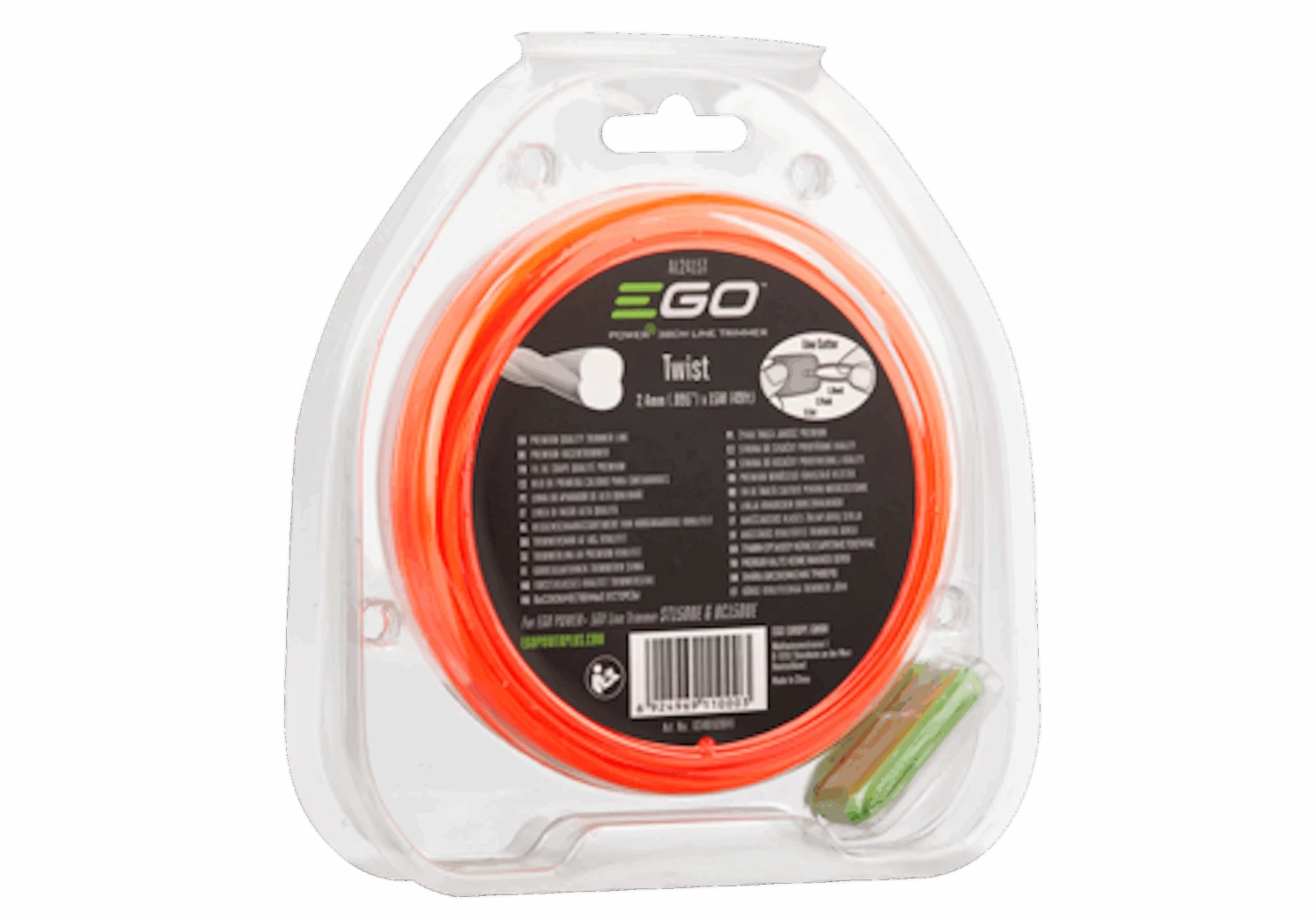 Der EGO Power Rundfaden AL2415T ist 15m lang. Der Faden ist 2,4 mm rund und ist somit für den Rasentrimmer ST1500E, ST1500E–F, BC1500E–F, BC3800E und STA1500 geeignet.