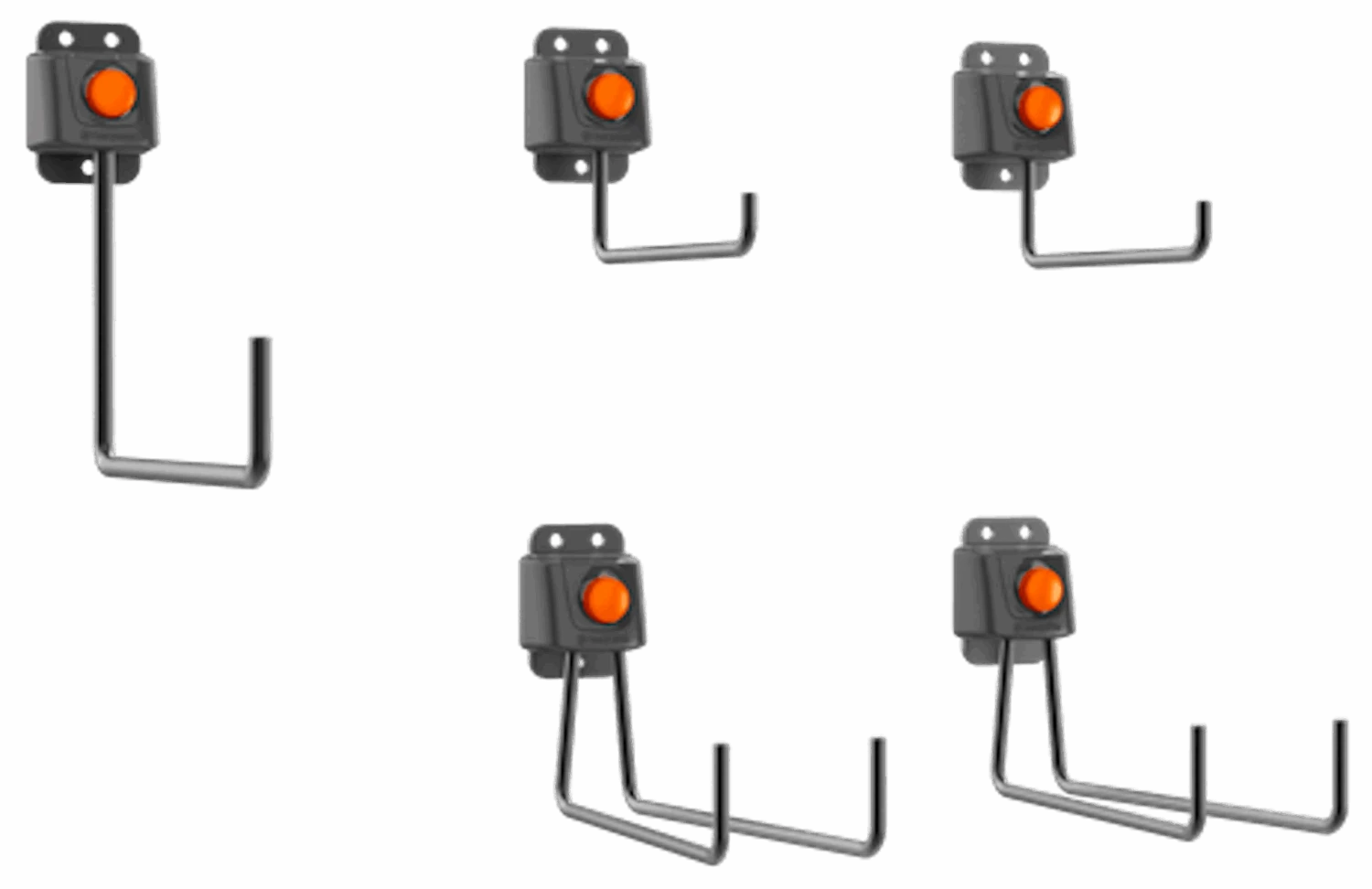An accessory in the Aspire storage system, this 5-hook kit is optimised to fit the most common garden tools in your shed, such as hand tools, water hoses or brooms. Each hook can be attached to the wall-mounted Aspire storage rail or installed directly onto the wall – enabling smart, effective storage.