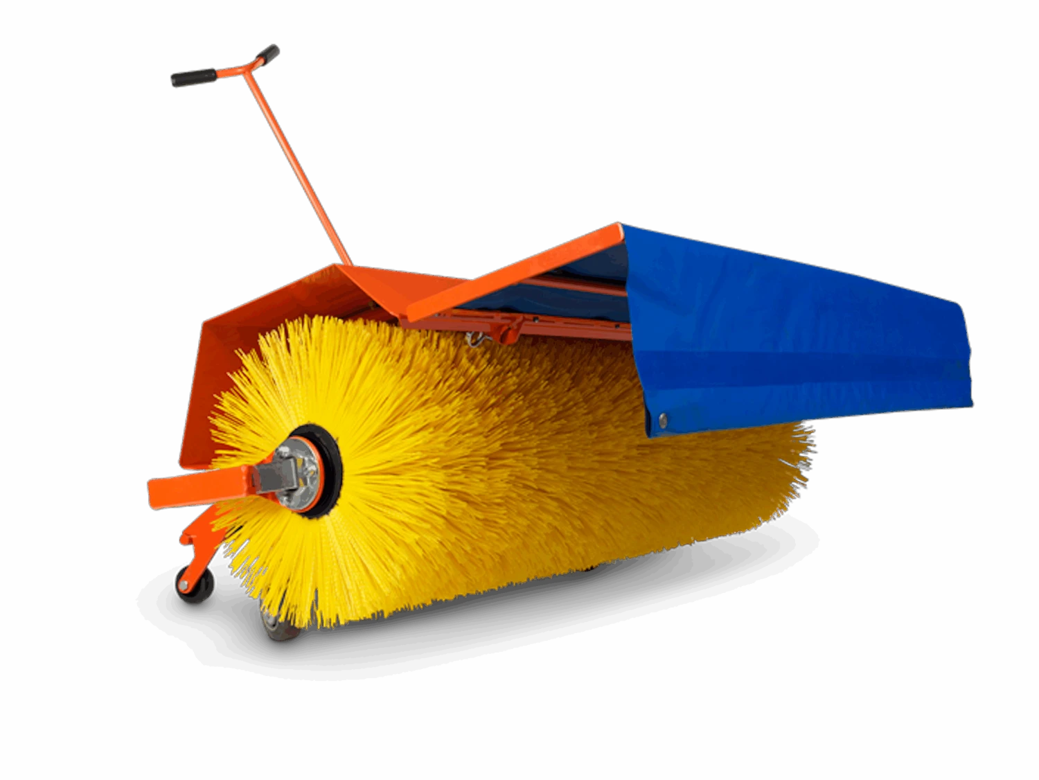 Die Bürste kann nach links oder rechts verstellt werden und ist mit verstellbaren Stützrädern ausgestattet.