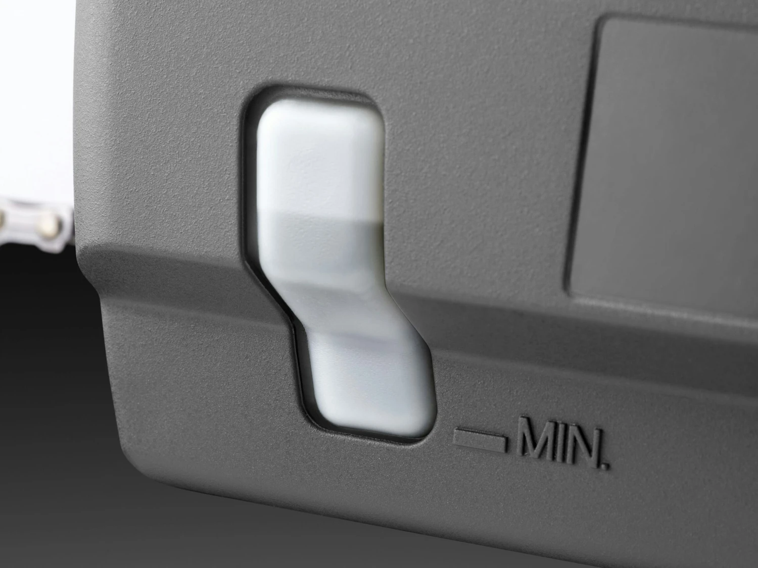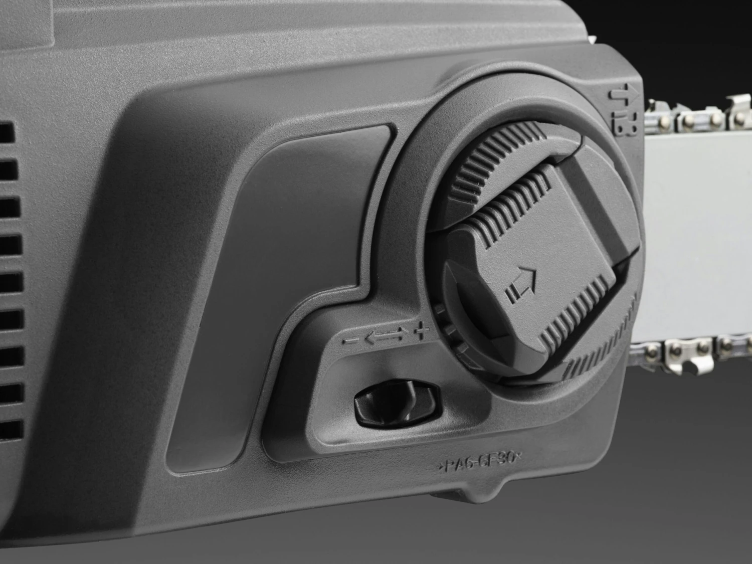 - Ein durchsichtiges Fenster erleichtert das Ablesen des Kettenölstands
