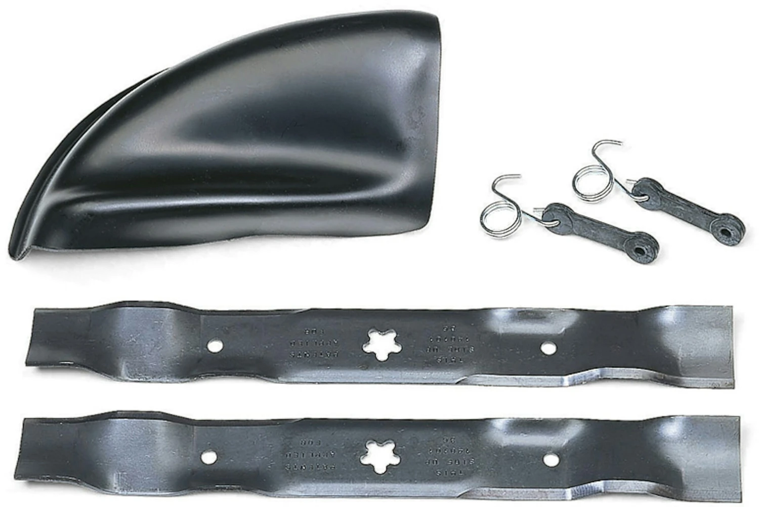 Das Husqvarna Mulchkit 107 cm besteht aus einer Abdeckung und einem Messersatz.