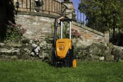 Die intergrierte Aluminiumpumpe darf mit einer max. Eingangswassertemperatur von 40 Grad betrieben werden. Der Hochdruckreiniger verfügt über einen separaten Seifentank sowie intergrierter Räder und einen teleskopierbaren Tragegriff für einen komfortablen Umgang!